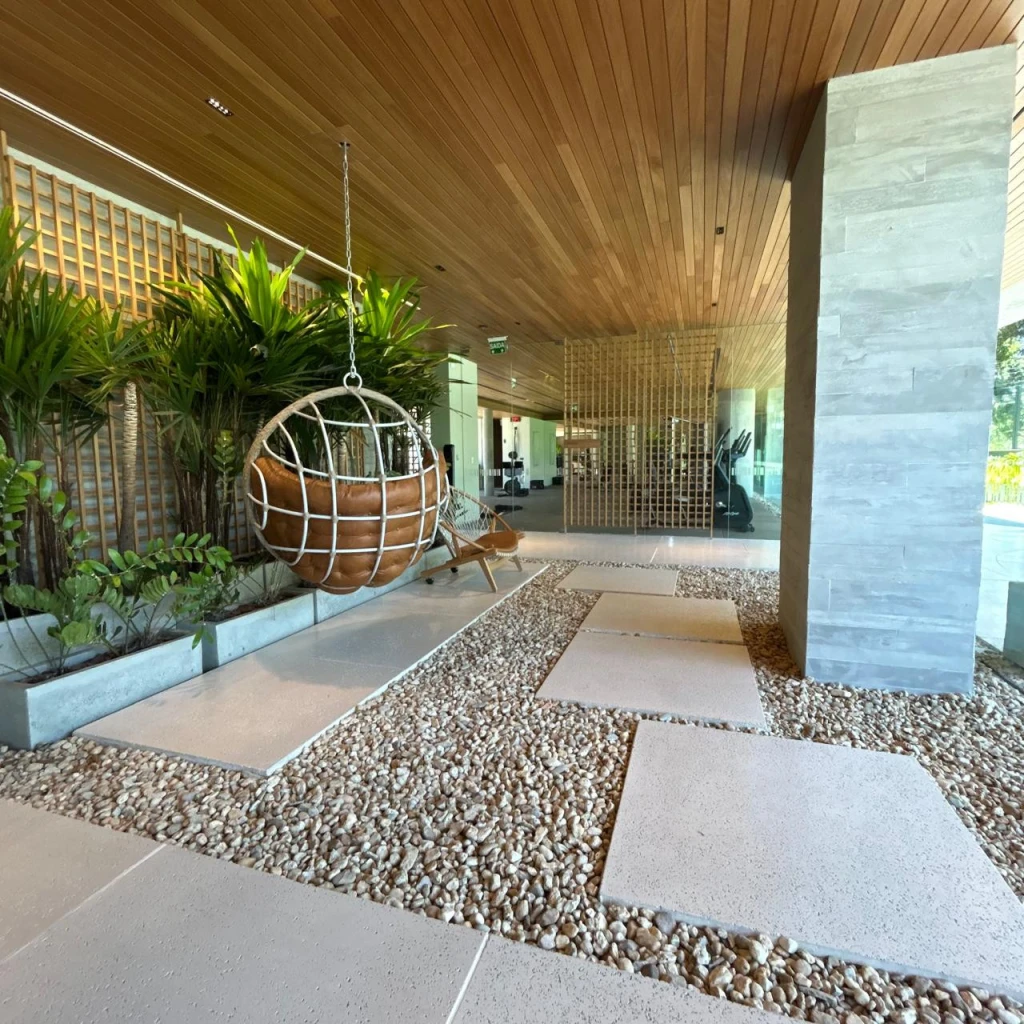 O projeto também se destaca pela sua infraestrutura de lazer completa, com espaços planejados para todas as idades e preferências. Entre os principais ambientes comuns estão piscina coberta com raia, piscina interna aquecida, quadra de tênis e quadra de beach tênis, salão de festas, espaço gourmet, espaço fitness, SPA, sauna, pet place, playground e muito mais — oferecendo conforto, conveniência e bem-estar sem precisar sair de casa.